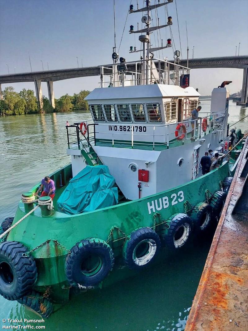 IMO: 9623790 Name: HUB 23 Vessel Type - Generic: Tug Vessel Type - Detailed: Tug Status: Active MMSI: 533170008 Call Sign: 9WLH3 Flag: Malaysia [MY] Gross Tonnage: 296 Summer DWT: 257 t Length Overall x Breadth Extreme: 30 x 8.6 m Year Built: 2012